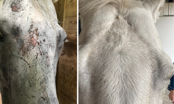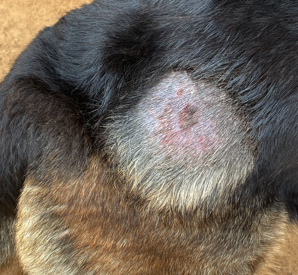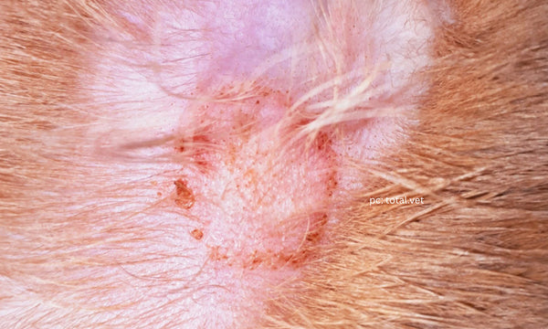 True hives are a systemic allergic reaction that topicals cannot cure. However, what is often diagnosed as "hives" is frequently the early stage of Rain Rot, appearing as multiple bumps that eventually lead to hair loss. A good rule of thumb: true hives rarely have scabs or crusts, whereas Rain Rot will.